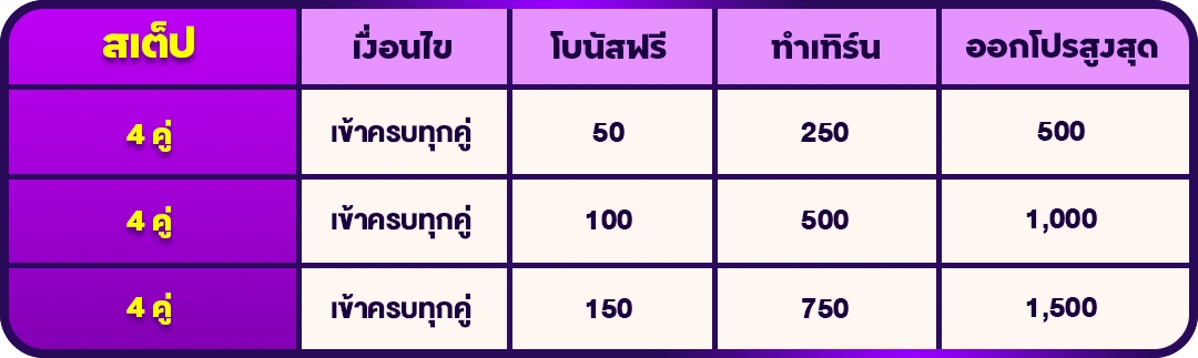 ✅บิลสเต็ปต้องมียอดแทงขั้นต่ำ 100 บาทขึ้นไป