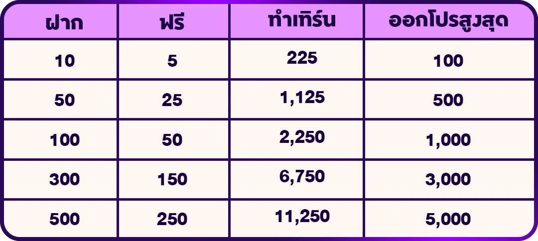 เงื่อนไขการออกโปรโมชั่น : เมื่อทำยอดครบสามารถกดออกจากโปรโมชั่นด้วยตัวเองได้ทันที